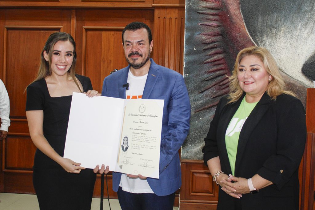 Luego del corte de listón inaugural, el C. P. Guillermo Mendoza Cavazos hizo en este lugar la primera entrega de diez títulos profesionales a egresados de las diferentes facultades del Campus Sur.